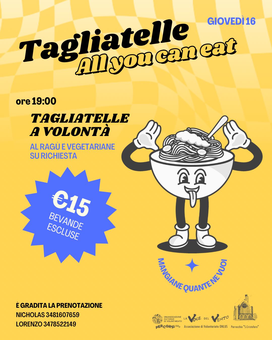 Ore 19.00 presso lo stand gastronomico parrocchiale: Serata Tagliatelle All You Can Eat