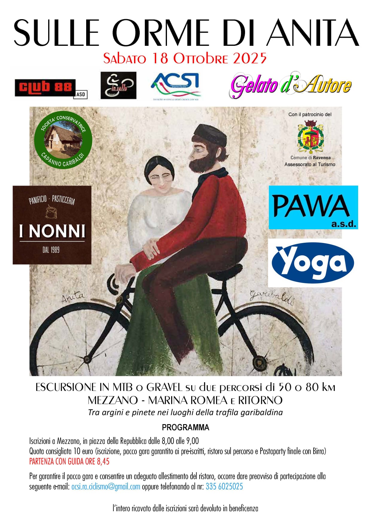 - Ore 08.00 presso Piazza della Repubblica manifestazione cicloturistica sulle orme di Anita.